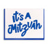 It's a mitzvah! This stylish greeting card features bold, contemporary hand-lettered typography that's perfect for celebrating this important milestone. The clean, modern design and vibrant blue color scheme make it an ideal choice for Bar or Bat Mitzvah celebrations, congratulating the young person on their special day, or acknowledging this significant step in their Jewish journey.