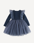 The Billie Dress is an autumn and winter statement piece. Featuring delicate tulle details, button fastenings at the back and ruffled shoulders. Perfect for all your little one's seasonal parties and festivities.
