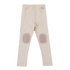 Soft ribbed leggings. Features elasticized waistband and fuzzy knee patches.