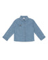 Classic chambray button down shirt. Features a rounded collar, one button decorative pocket on chest, hidden button front closure and small cuffs at sleeves. Can be worn as a shirt or as a lightweight jacket.