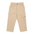 Comfy trousers in beige. Features elasticized waistband with decorative button and belt loops, two front pockets, one back pocket and one cargo pocket on the left leg.