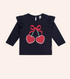 An extra special festive top, crafted from the comfiest organic cotton with just the right amount of stretch. It has a shoulder frill detail and cherry hearts embroidery. Pair with matching leggings for a cute set>