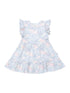 Made from soft organic cotton, this pretty floral dress features sweet shoulder frills, a playful multicolor floral print and a tiered skirt with lots of twirl factor.