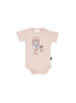 Adorable soft pink onesie with fun new mermaid graphic. Gold metallic foil adds some extra fun detailing to this design of a little mermaid and her mercat. Button snap closure at shoulder and bottom allow for easy dressing. AZO Free Dye. 100% Organic cotton (GOTS Certified)