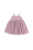 Adorable mauve tank dress with a sweet layered skirt in and all over tiny hearts deign. Features adjustable straps for best fit.