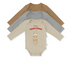 Cute 3 pack of simple long sleeve onesies. Two solid and one with saucisse placement graphic on the front.