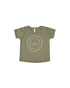 Fern green classic style tee featuring cute bicycle illustration, crew neck and a loose fit through the body.