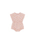 Adorable spongy knit romper in an all over starfish print. Features a cinched waist, short sleeves, and hidden snaps between the legs for easy changes.