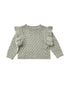 Silky soft gable knit sweat with rib knit ruffle trim over the shoulders. Pair with the gable pant for little ones or with a pretty skirt from the collection for bigger girls.