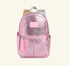 Metallic pink two tone backpack. Primary color is pink metallic with one silver and one gold & silver strap. Features adjustable straps, and zip closures with a tassel detail. Front and side pockets provide compartments for school supplies, water bottle and more.