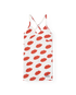 Straight fit dress. Features v neck, cross back thin straps and an allover red lips print. The words "The Animals Observatory" are printed on the bottom left hem along with the logo.