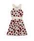 Beautiful knit dress in a natural color with all over red and black poppy print. Features a high ribbed neckline, solid ribbed waist and knee length (depending on height).