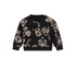 Fleece sweatshirt with all over cream flower design on black. Features solid black edges, straight cut and black drawstring on the hood. Pair with the matching pants for a cool set. Made from 100% cotton.