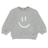 Soft grey baby sweatshirt with a cute smiley face design. Features a snap closure at the back of the neck. Wear the top with matching baby trousers. This Molo product is GOTS certified organic, which means that it is made with certified organic materials and produced under the strictest social and environmental standards throughout the entire manufacturing process.