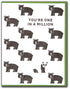 "You're One In A Million" greeting card with adorable bears allover and one cute panda. Blank inside for your message.