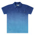 Blue T-collared short in organic cotton terry. Short sleeve top has a loose fit, small chest pocket, and side slits.
