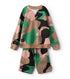 Cool unisex two piece sweatsuit in multicolor camo. Features baggy shorts with a roomy fit, side pockets and an elastic drawstring waist. The matching sweatshirt features a crew neck, ribbed cuffs, hem and neck, and thumbholes at the end of the sleeves. Both the top and shorts have a small black NUNUNU logo.