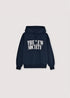 Comfy and cozy hooded sweatshirt in navy with branded text on the front.