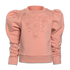 Soft sweater with feminine styling in a rich rose color. Features slight puffed sleeve, floral embroidery with small cut out details.
