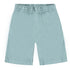 Misty Blue shorts in organic cotton. The shorts feature a wide elastic waistband with an internal drawstring, pockets on the sides and back, and a regular fit.