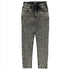 Cool stonewashed denim with a 90's feel. Features elasticized waist, drawstring, tapered leg, front and back pockets. Made from 99% cotton with 1% elastane for stretch.