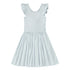 Blue tank dress with a poplin skirt in organic cotton. Features scoop neck, deeper scoop back, ribbed jersey bodice and ruffle trim on the straps.