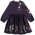 Deep purple dress with beautiful placement prints of flowers and berries. Features a zip closure at the neck, gathered waist and full skirt with ultimate twirl factor.