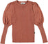 Gorgeous is a clay colored knit top with puff sleeves. features a rounded neck, fitted bodice and pretty glitter threading throughout that adds a beautiful shimmer. Pair with the Britani skirt for a chic look.