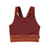 Solid burgandy exercise top with a bronzey bottom band and straps with text "run # jump # dance #speed # molo" repeating. Features HEIQ smart temp technology that keeps little ones comfortable while being active. Pair with these snow leopard pants or the matching pants for a coordinated look.