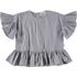 Beautiful striped top in a crisp cotton with short bell sleeves, a peplum waist and a zipper at the back.
