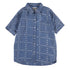 Ultra soft denim short sleeve shirt. Features button down front, left-side chest pocket, uninterrupted pattern with seamlesscuffed sleeves, and slightly longer back. Made from 100% cotton