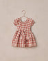 Pretty plaid dress perfect for holiday celebrations. Features a scoop neck, slightly puffed sleeves, a tiered skirt and a bow that ties in front.