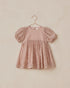 Pretty rose colored dress with a babydoll-inspired silhouette with sweet puff sleeves, a gently curved waistline, and two faux shell buttons at the back for a delicate finishing touch. Coordinating bloomers included with size 2Y.