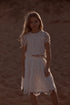 Gorgeous floral top in white. Features detailed floral design, slightly cropped cut and closure at back of neck. Bodice is lined, sleeves are unlined. Pair with the matching skirt for a feminine, monochromatic set.