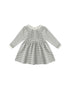 Sweet striped dress in a comfy cotton fabric. Featuring gathered puff sleeves, contrast neckline and full skirt. Coordinating bloomers included with all sizes.