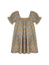 Beautiful liberty print dress featuring a square neckline, puff sleeves and open back with a string tie detail. Depending on height this dress falls just below the knee.