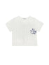 We love this linen cotton striped short sleeve shirt. Features a v-neck, pocket and printed text "all the things I love."