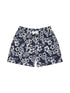 Tropical print swim shorts in a cotton twill with an elasticized waist, drawstring and inner lining.