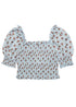 Cropped floral top with smocked bodice and bubble sleeves. 100% organic cotton. Made in Portugal.