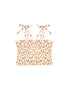 Adorable cropped top with an all over leopard print. Features tie straps and smocking all over.