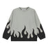 Cool grey long-sleeved top with a rad fiery graphic design. Features a ribbed neckline and cuffs, a loose fit and a front print of a black flames rising up.