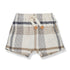 Classic plaid shorts. Features back and side pockets, natural colored decorative drawstring with leather finishes and elastic waistband for easy dressing.