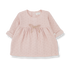 Cute light pink dress with an all over tiny dots print. Features a small bow detail on the front and a button down back for easy dressing.