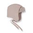 Padded dusty rose hat. Features striped lining with turned up flap and ties under the chin.