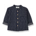 Cozy button front shirt in a navy grid design. Feature wooden buttons, cuffed wrists an a small pocket detail at left chest. Made from 50% cotton and 50% acrylic.