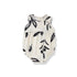 Pretty bubble romper in bone with graphite abstract floral painted print. Features a gathered empire waist, loose fit through the body, 3 wooden button closure at back of neck and button snap closures at bottom for easy dressing.