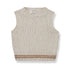Beautiful knit top in a neutral biscotto color. Features a sleeveless design, subtle texture and two thin toffee colored stripes at the bottom.