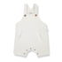 Soft cotton jersey baby overall in solid bone color. Features wooden buttons at bottom of straps, two small pockets at the front and button snap closures at bottom for easy dressing and diaper changes. Wear alone or layer with a cute tee underneath.