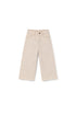 Cream colored wide trousers with button front, wide leg, front pockets and two back pockets with classic stitched design. Made from 75% cotton and 25% organic cotton.