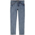 Light blue, slim fit jeans. Features 1% elastane, for stretchy comfort. Size 9Y and below have a snap closure and not a jeans button. Constructed in 100% organic cotton